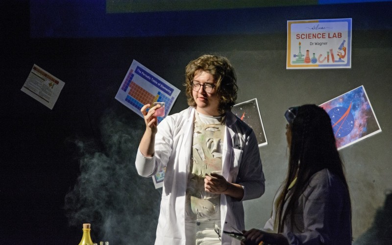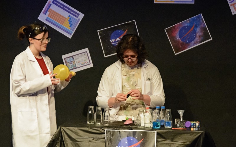 The performance began with an introduction to the characters, the lab and the intelligence potion and how it was invented. This was followed by the cast performing the Periodic Table song and dance. Its catchy rhythm and dance moves were thoroughly enjoyed by the young audience and they were soon wiggling along.